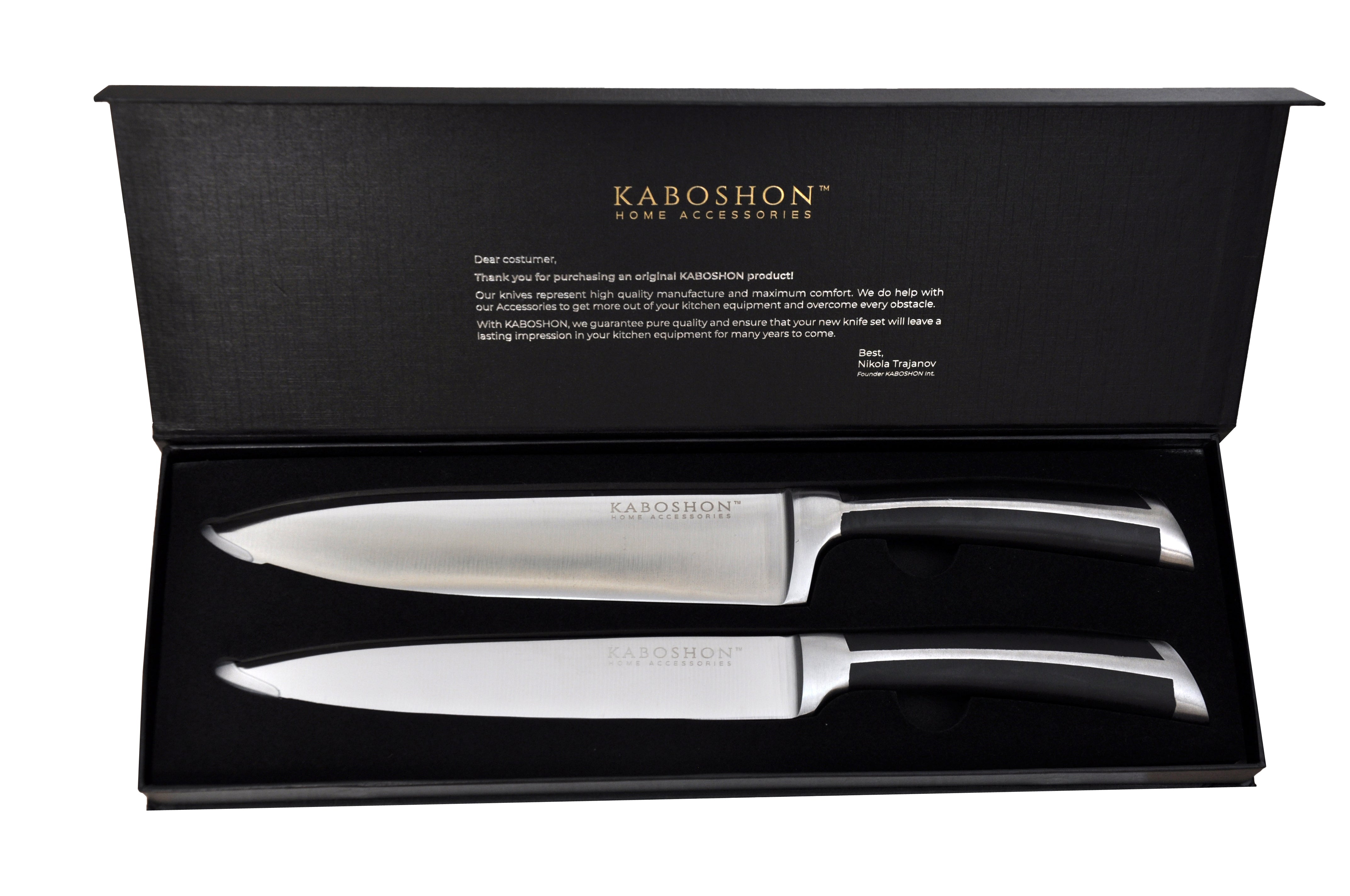 Cooking should always be fun. This is only possible with perfect kitchen equipment, which includes a high-quality knife set like the one from our company KABOSHON ™. We produce our knife set Special Edition from an experienced manufacturer who has been perfecting the craftsmanship of premium quality knives since the 19th century. As a matter of principle, we only have our products produced by manufacturers who supply other world-famous brands. Equip your kitchen with the highest quality cutting knives and choose KABOSHON ™.